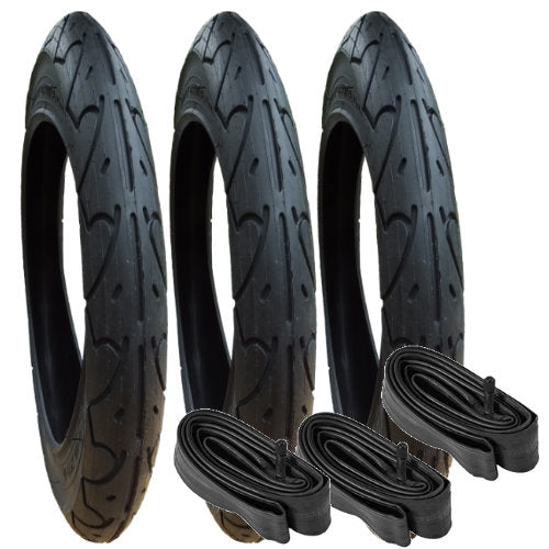 A set of 3 tyres and inner tubes suitable for Jogger style prams and Running Buggies. The tyres feature an Easy Rolling tread design which are perfect for every day use.